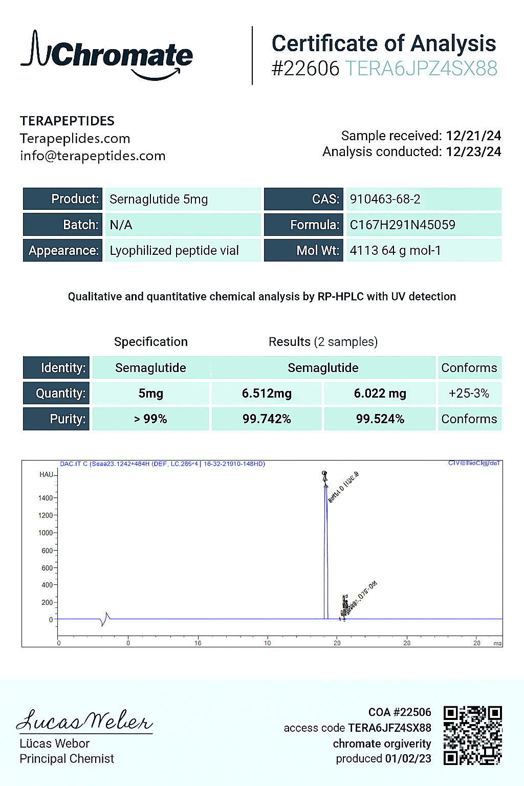 Composition: 5 mg Semaglutide (lyophilized peptide powder)